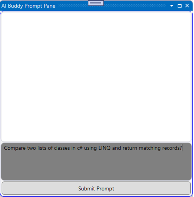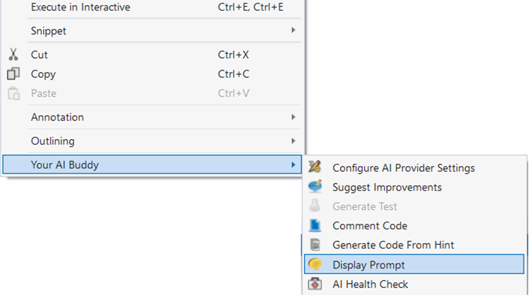 AI Prompt DialogThere is a generic prompt dialog, where you can bring up an AI Prompt. You don’t need to highlight any code, as this will be a general prompt dialog.