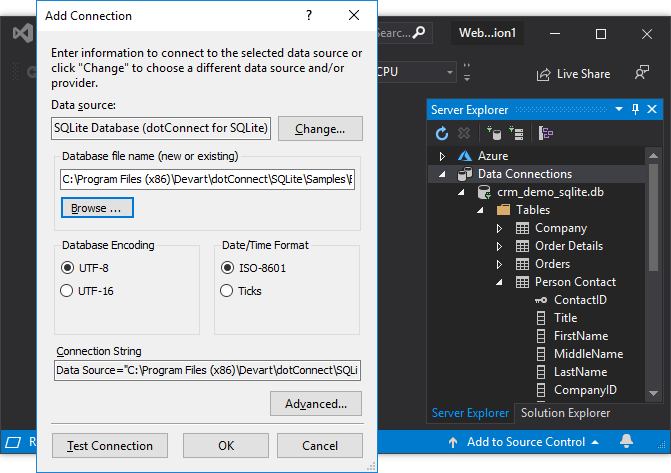 .NET Connector for SQLite with ORM SupportGet Started | Explore Features | Documentation 30 days free trial • ORM support • Visual Studio integration dotConnect for SQLite is a versatile enterprise-grade connector that enables access to SQLite data in .NET applications of all levels. It delivers advanced ORM support, compatibility with multiple SQLite versions and .NET platforms, and easy integration with a variety of IDEs, including Microsoft Visual Studio. Moreover, this connector regularly undergoes security and performance tests to make sure it stays ahead of the competition at all times. Extra benefits include premium support, frequent updates, and detailed documentation to help you with a quick and easy start.