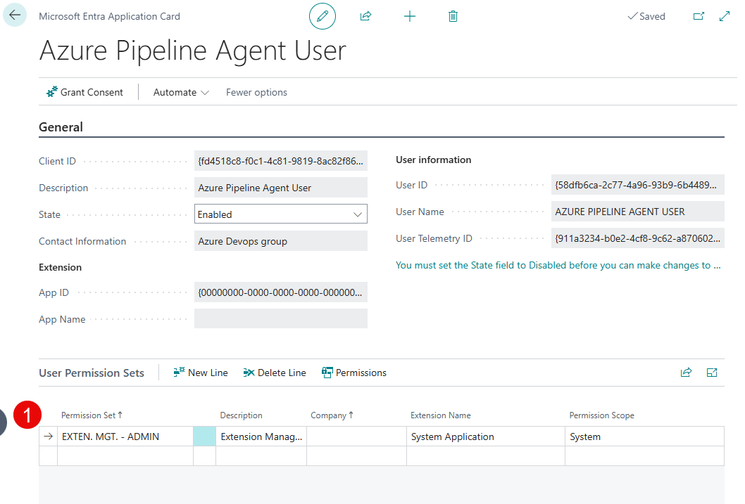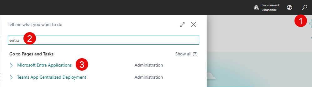 Business Central ConfigurationA user must be set up in Business Central to allow the pipeline agent to communicate with it. Select the magnifying glass and search on "Entra":