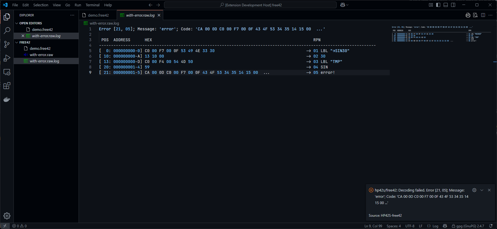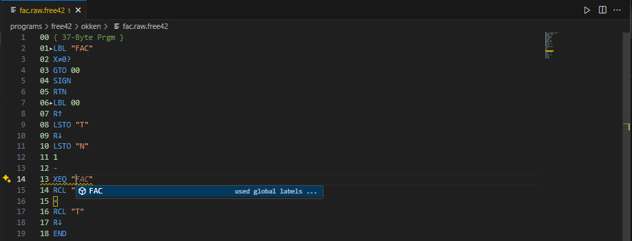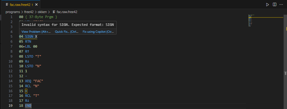 When using Visual Studio Code, the code is displayed in UTF8, though all original characters of the HP42S/free42 can be displayed correct.