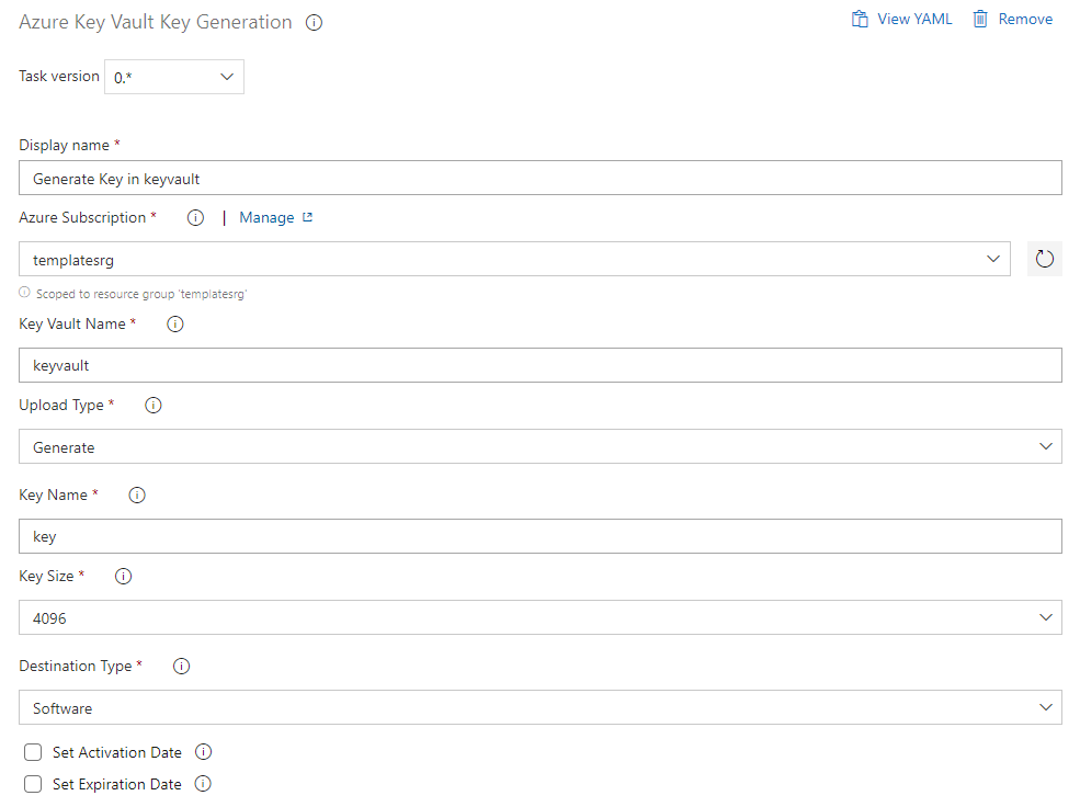 Azure DevOps task that allows deployment of a key to Key Vault. Generate, import and restore functions are supported