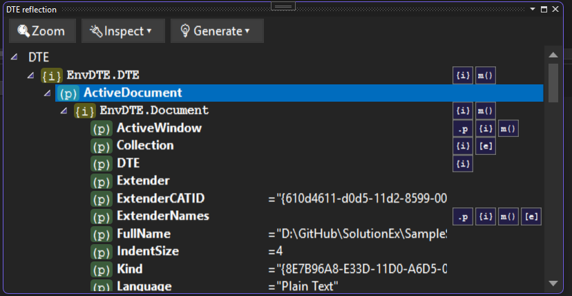 - You can use DTE Inspector to inspect DTE objects