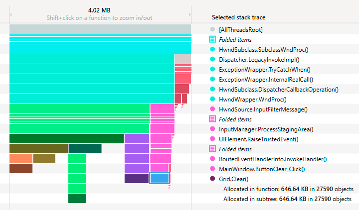 Analyzing memory trafficExcessive allocations and garbage collections may imply significant memory management overhead. Use the traffic view to understand what objects are created/collected most intensively in your app and what functions are causing this memory traffic.