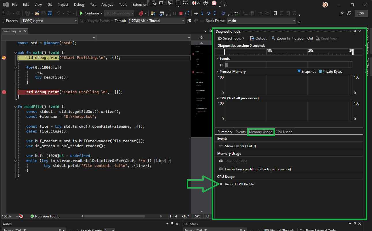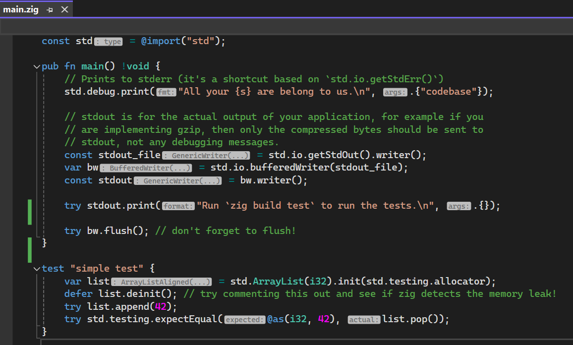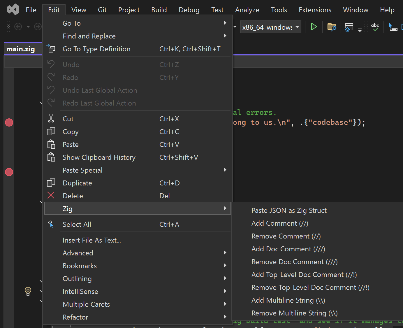 c) Developers who have worked on Microsoft's platform only need to learn the Zig language itself; they can continue to create new Zig projects, debug, profile performance, and run tests via the GUI as before—without having to learn Zig's command-line tools or how to write build.zig.