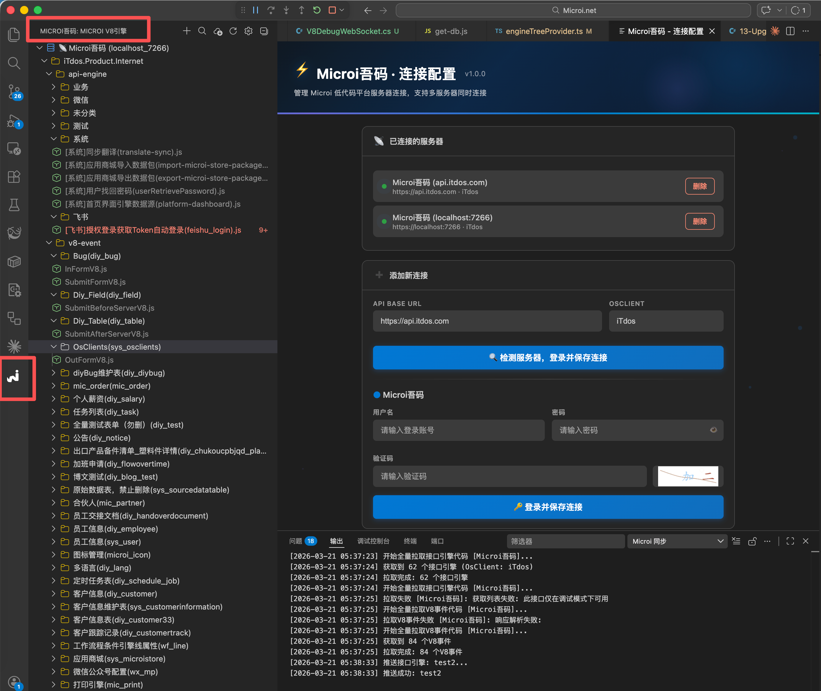 Microi吾码低代码平台 V8 引擎开发调试工具。 连接 Microi 后端,拉取 / 编辑 / 推送接口引擎,支持远程真机执行、逐行断点调试,以及 GitHub Copilot / Claude Code / Cursor 本地 AI 编程——AI 知识库自动生成,无需任何额外配置。