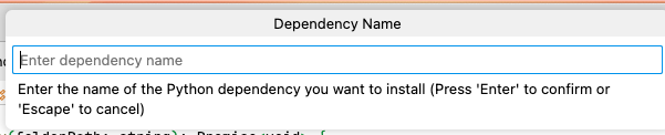 3. Follow the prompts to select the programming language and enter the dependency name.
