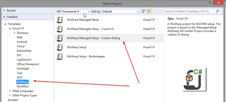 Project templates for WixSharpThe extension has been rebuilt for VS2017 and higher. If you need older releases please visit https://github.com/oleg-shilo/Retired-VSIX. ---------------------------------------------------------------------------------- Note that VS2022 extension manager may sometimes install the extension as disabled. If it is the case then you may need to simple enable it: