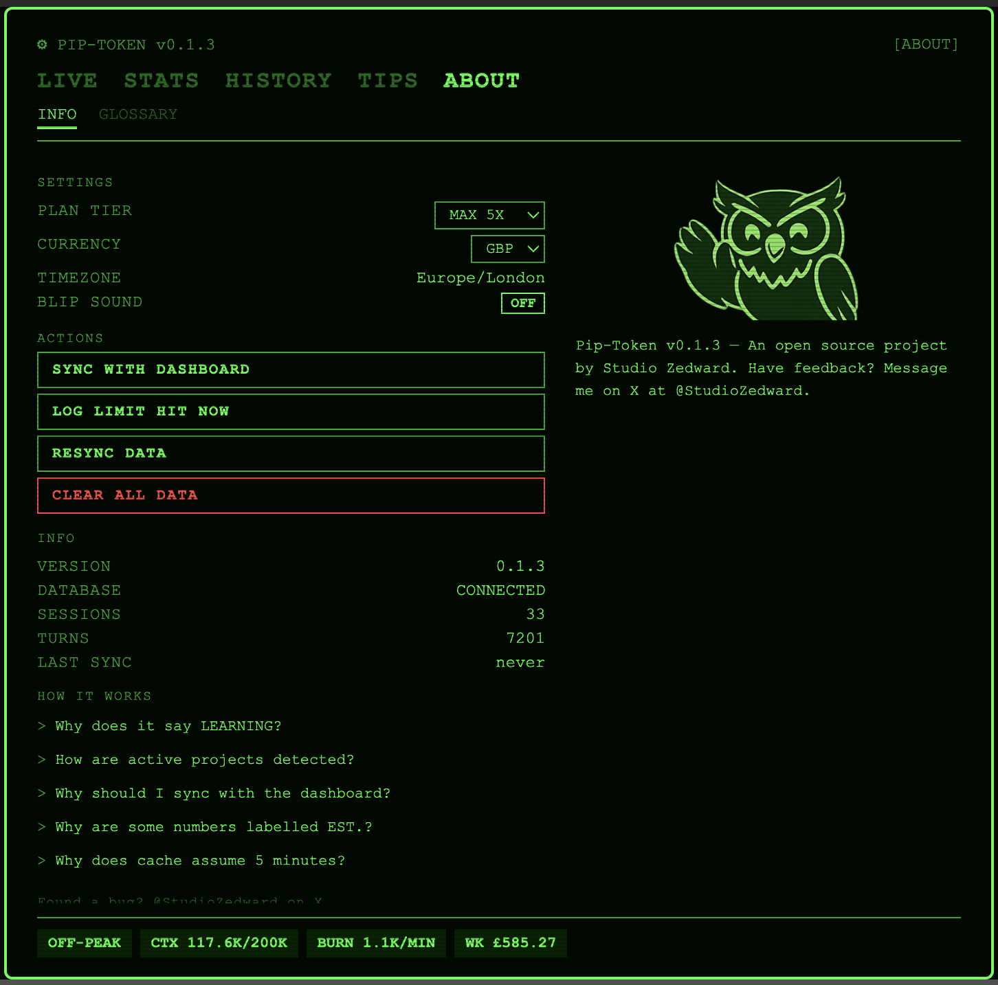 Pip-Token is not affiliated with, endorsed by, or sponsored by Anthropic. It's a community tool built by a frustrated user. If Anthropic ships official usage tooling in their own products, Pip-Token will continue to exist for the historical analysis, the aesthetic, and people who like having control over their own data.