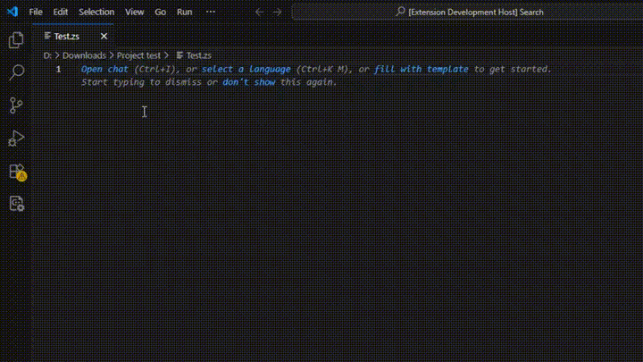 It is a natural language, written in the style of different programming languages, and supports default styles. This language is not difficult, but if you do not learn carefully, you will mistake ZS for ZenScript or Z# 📖 How to learn my languageTo learn my language, you should check ZS_LANGUAGE.md 🛠 ZS Language ExtensionThis is an extension for Visual Studio Code. Its role is to help you understand what this language is. While it already has many powerful features, it currently lacks several important ones. In the future, if there are any Issues/Pull Requests, I will accept and implement them. 🎯 FeaturesTo know, check ZS_LANGUAGE.md 🤝 CreditsThe ZS themes are enhanced versions of the built-in Microsoft VS Code themes: