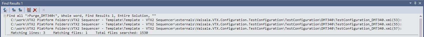 → PreTestSteps or PostTestSteps selection or place cursor on the text to be searched