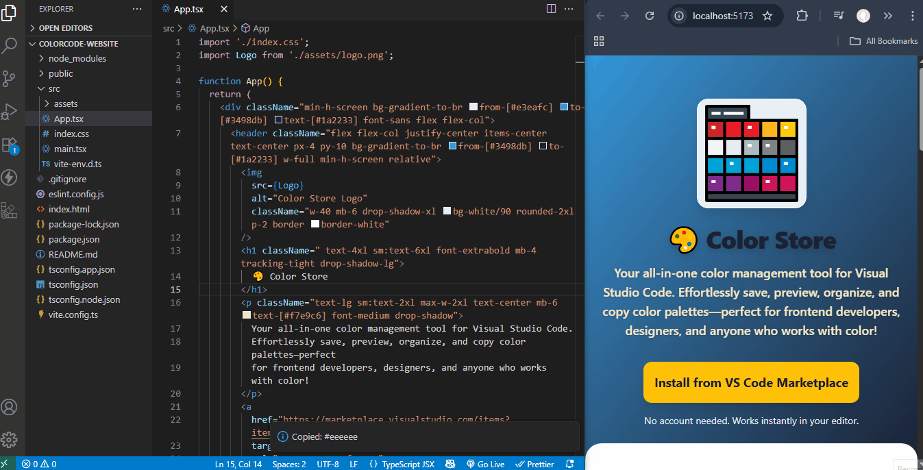 Live Color Preview: Instantly preview any color and its beautiful shades in a dedicated editor tab.