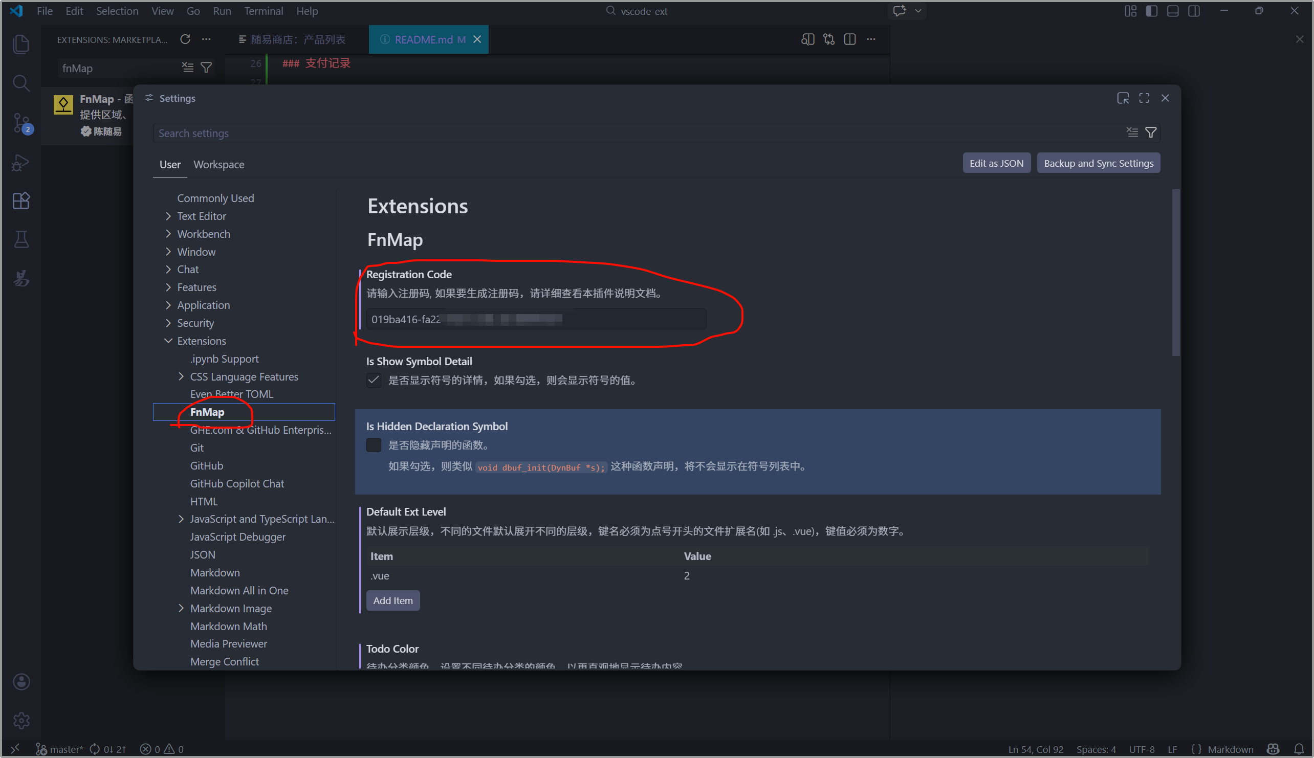 最后复制注册码,放到对应扩展的配置文件中即可。