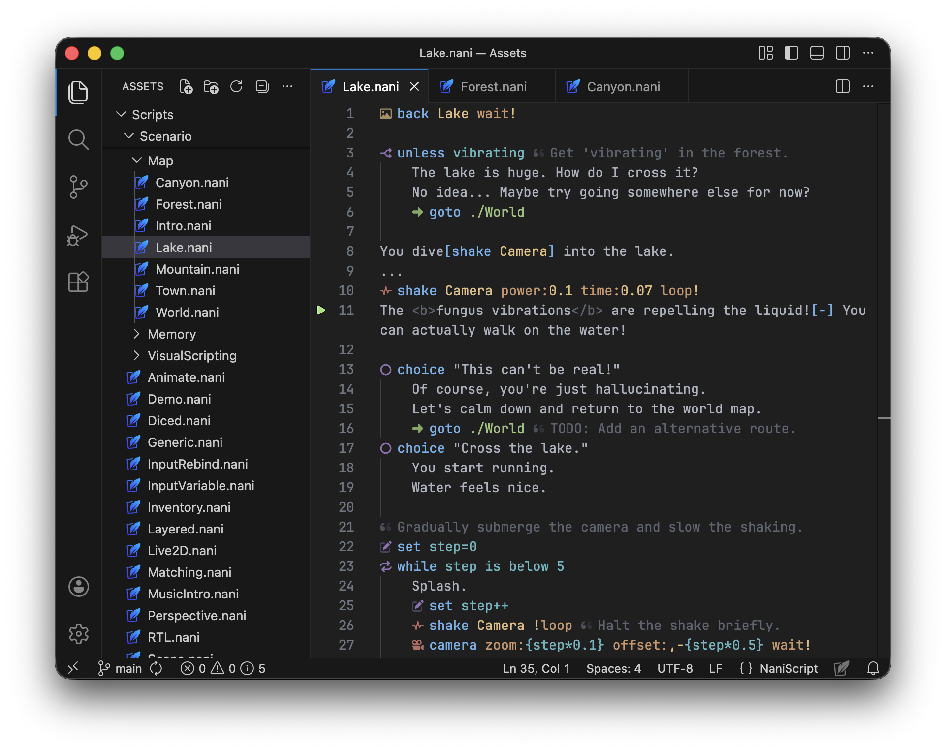 Naninovel VS CodeGrammar and IDE support for NaniScript — the scenario scripting language for the Naninovel visual novel engine. Find installation and usage instructions at: https://naninovel.com/guide/ide-extension