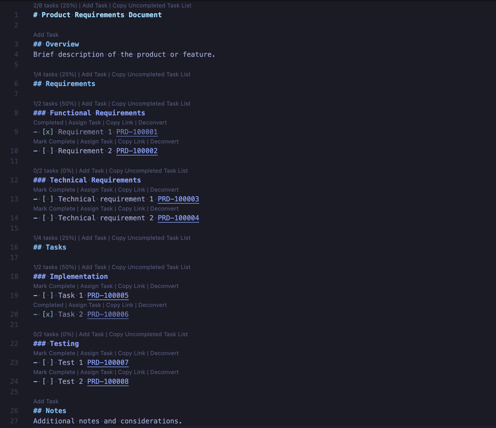 - Click any PRD-XXXXXX reference to jump to that task