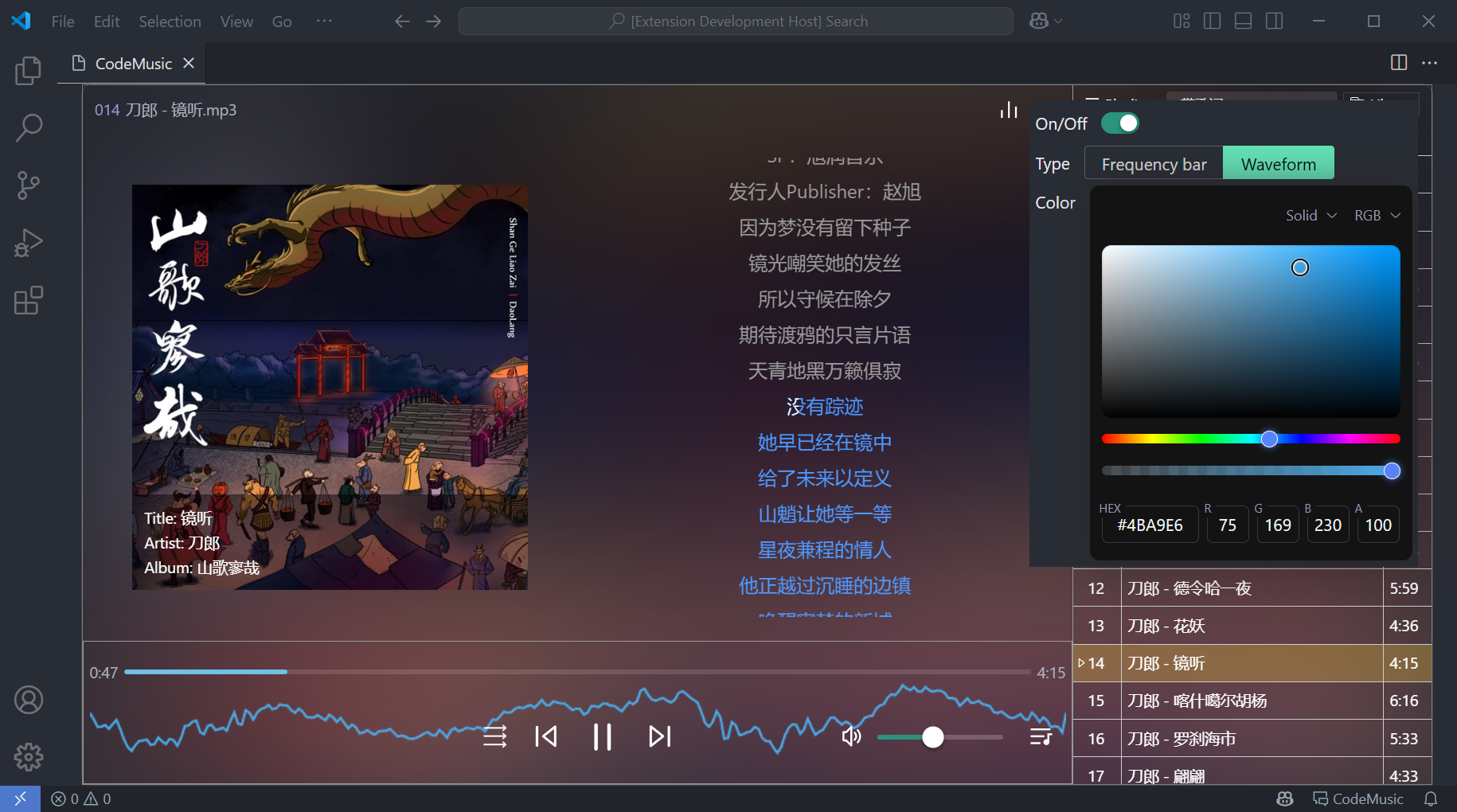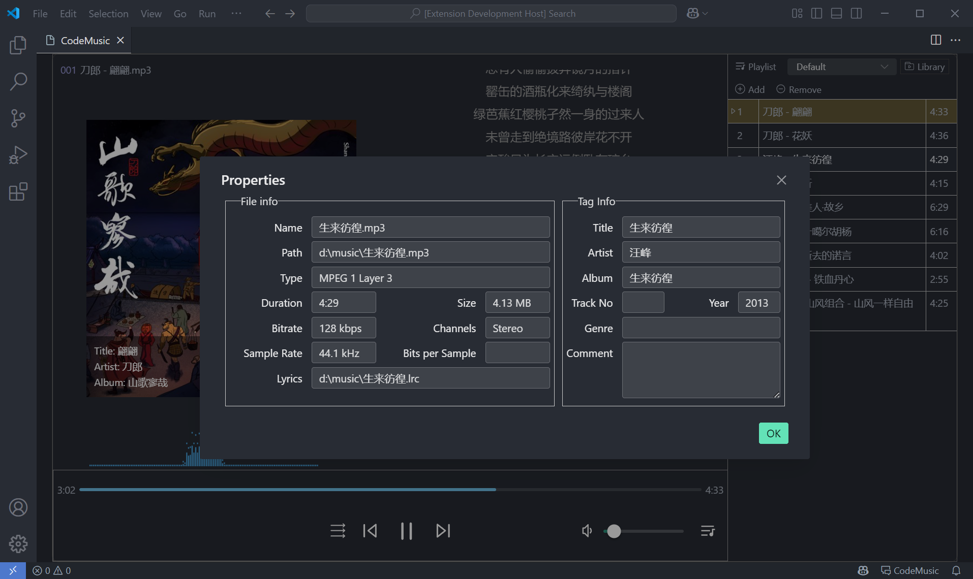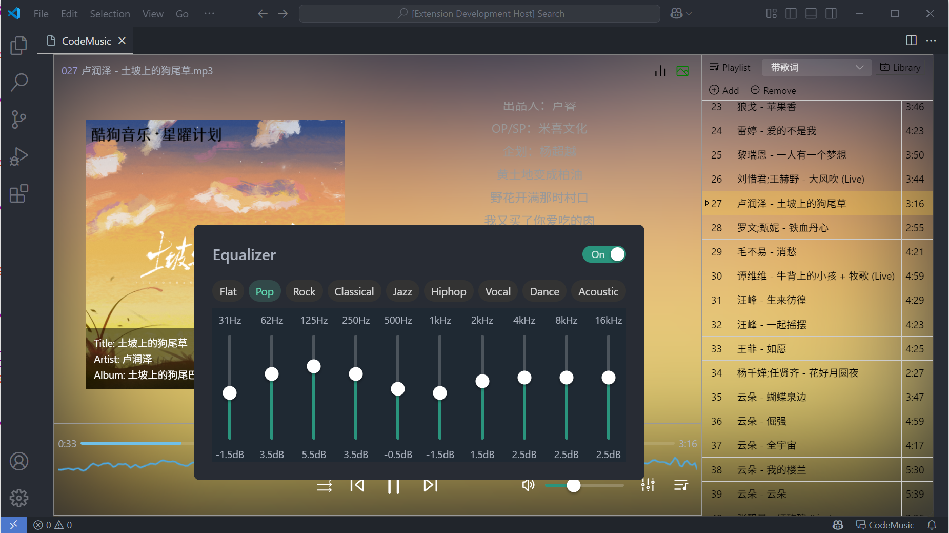 CodeMusicCodeMusic is a local music player extension for Visual Studio Code. Just for fun! Source code is coming soon. Features