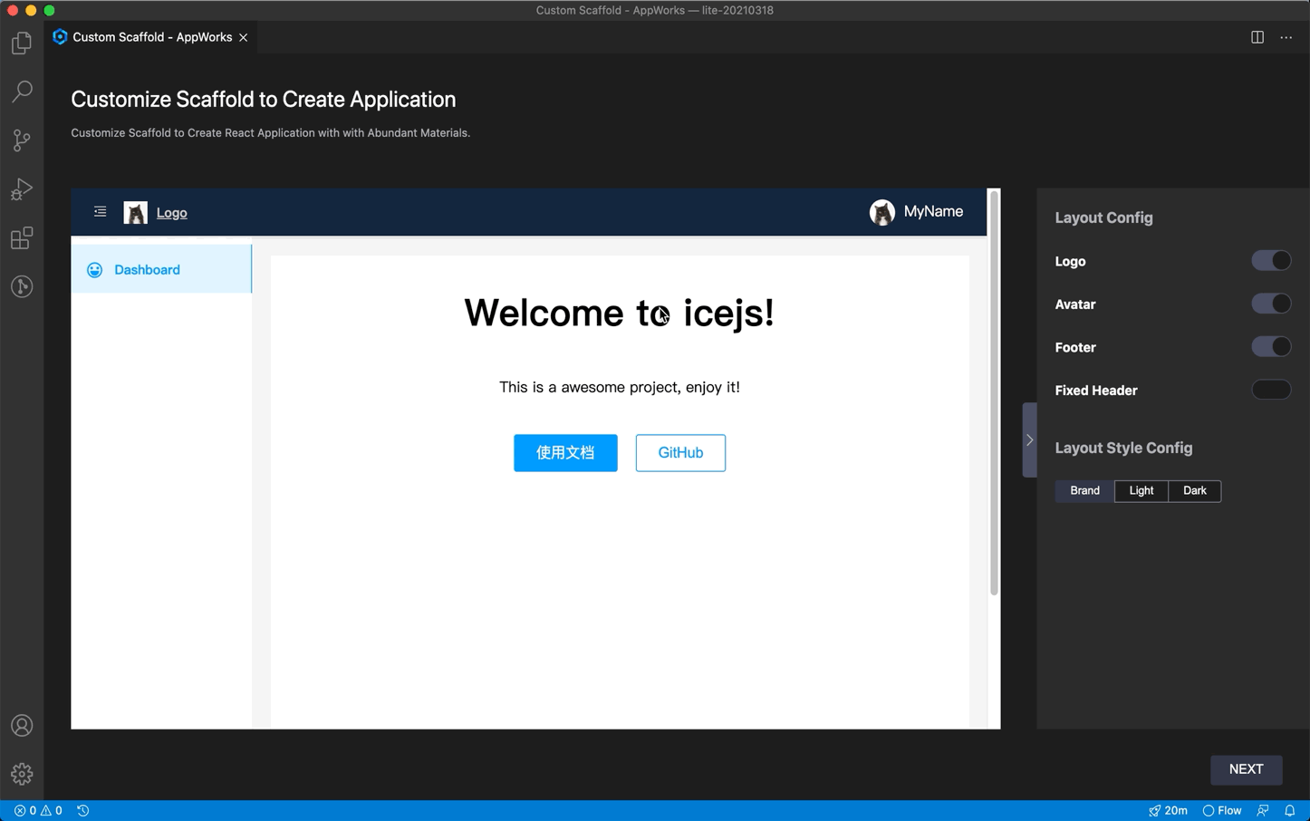 AppWorks: Customize Scaffold to Create Application to activate the extension.
