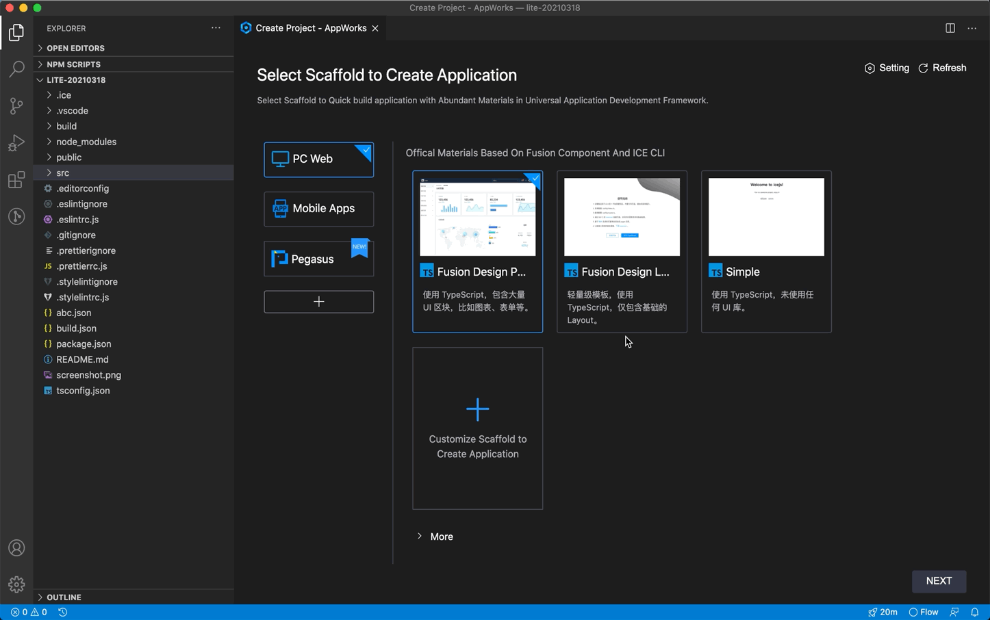 AppWorks: Select Scaffold to Create Application to activate the extension.