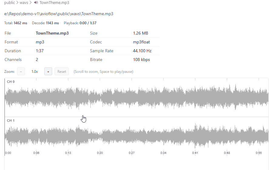 High-performance audio previewer for VS Code using the avioflow native engine. This extension provides a custom editor for various audio formats, allowing users to visualize waveforms and inspect metadata directly within VS Code.