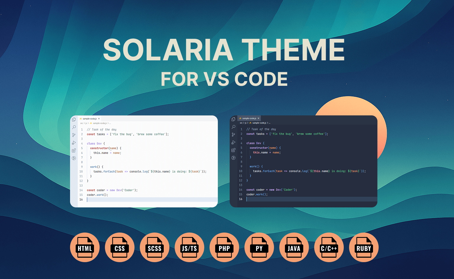 Solaria Theme — a minimalist and developer-friendly color theme for Visual Studio Code.