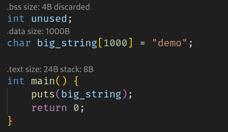 MemoryLoupe provides in-editor code size insights: codelenses about executable symbol size and stack usage.