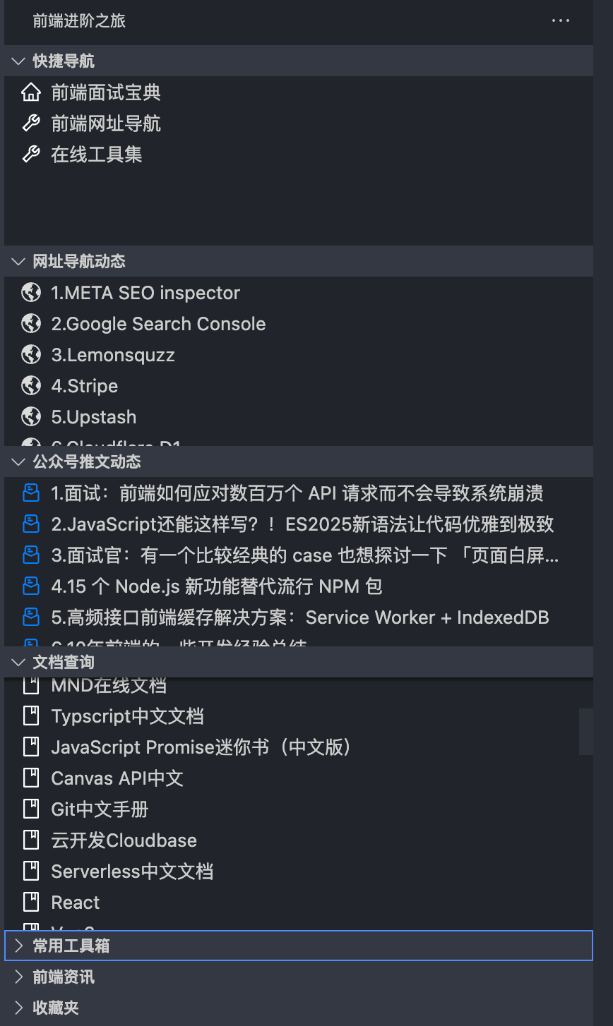 把面试题、常用资料导航装到VSCode里,更方便查找!