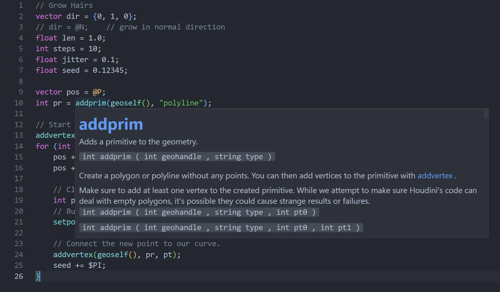 Supported Houdini 21, Syntax highlighting for Houdini VEX.