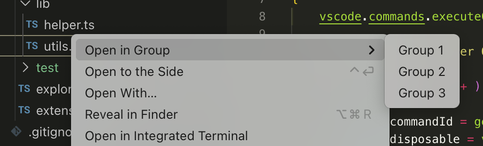 English / 日本語 FeaturesAdds a context menu that lets you choose which editor group to open a file from the Explorer.