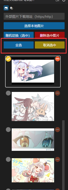 - 随机切换选中图片,在选中的图片中进行背景图随机切换(详情可见下一条随即切换的描述)