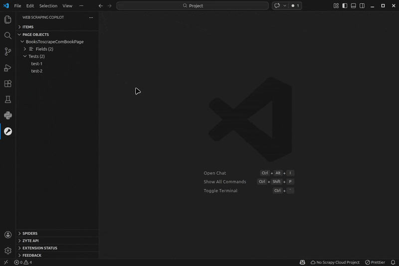 Web Scraping CopilotWeb Scraping Copilot is a free Visual Studio Code extension by Zyte that helps you generate web scraping code with GitHub Copilot. It streamlines working with Scrapy projects and includes optional integration with Scrapy Cloud, making it easier to deploy and monitor your web scraping jobs. RequirementsVisual Studio Code 1.109+. Web scraping projects must use Python 3.10+ and Scrapy 2.7.0+. GitHub Copilot Pro or better is recommended for AI web scraping tools; the limited requests of the Free plan can run out quickly otherwise. See all requirements. Quick Start